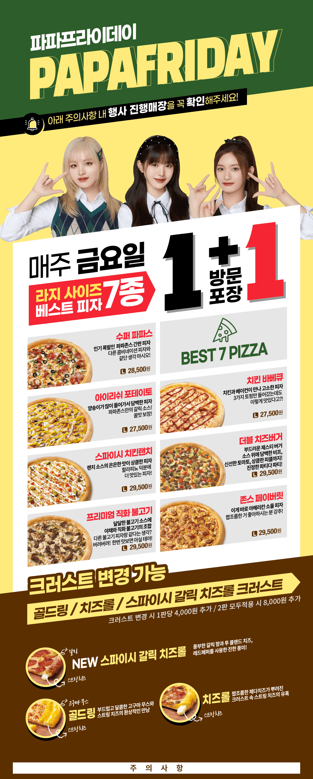 - 온라인 주문 시 ‘파파 프라이데이’ 메뉴에서 선택해야 적용